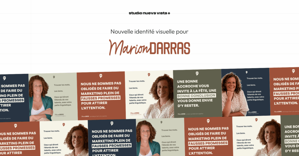 Plus besoin de deviner quelle police utiliser ou où placer quoi. L’ensemble a été pensé pour que Marion puisse créer ses visuels en toute autonomie, sans se poser 1000 questions ni avoir peur de mal faire.