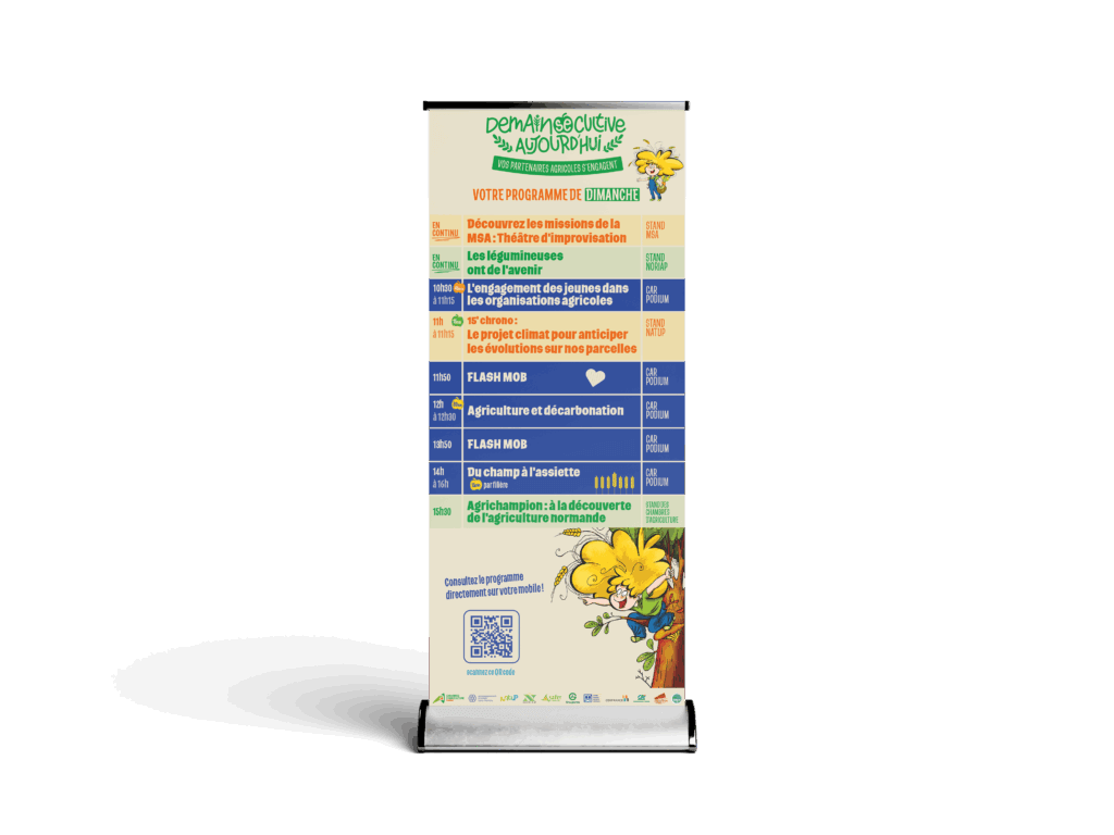 Convaincue par la force de l’univers proposé, la Chambre d’Agriculture de Normandie a décidé de faire de “Demain se cultive aujourd’hui” leur marque à part entière pour l’ensemble de leurs événements !